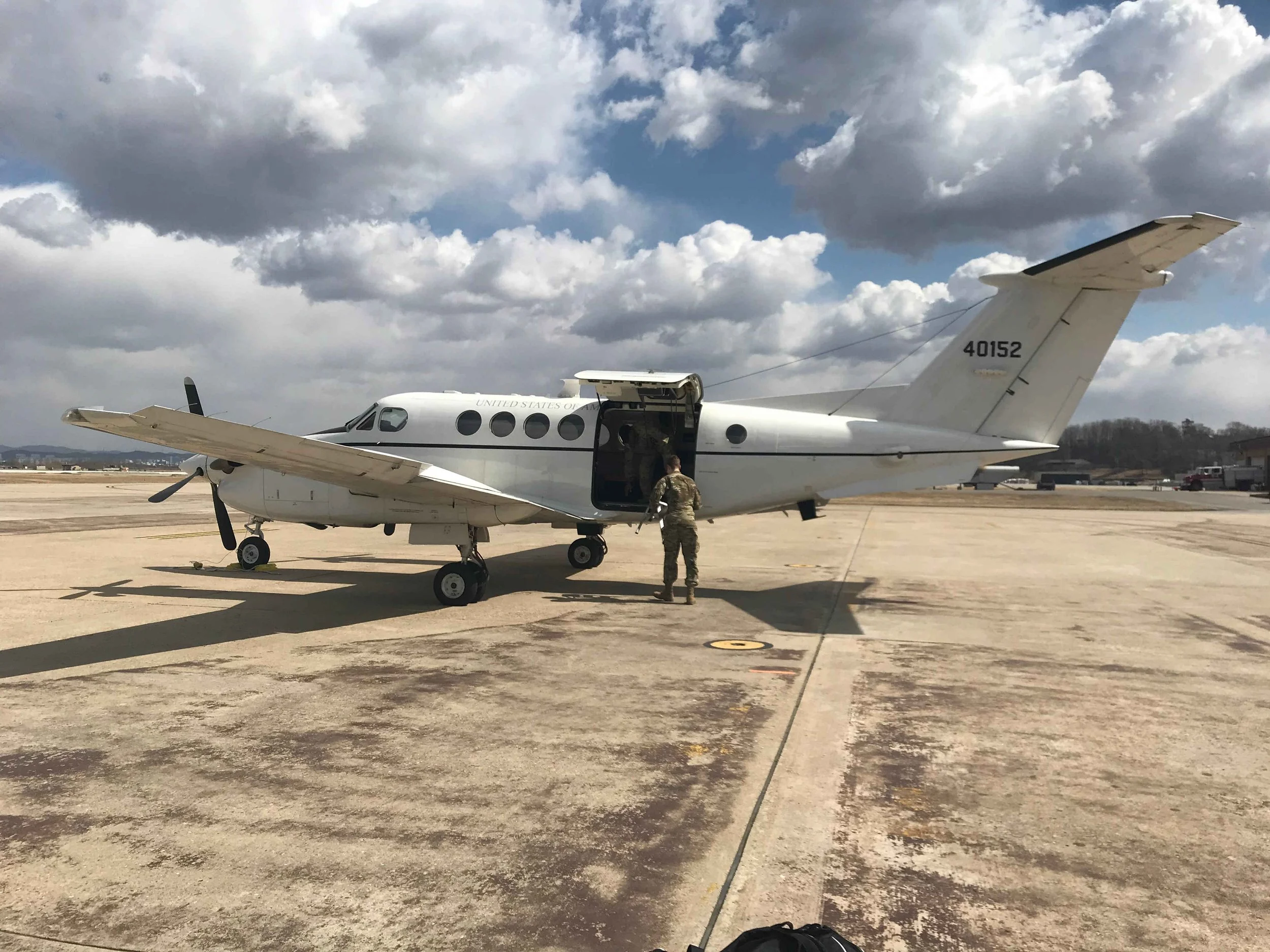 13 March 2019 - in flight on a US Army C-12U from Osan to Gimhae Air Base during Exercise DRAGON LIFT, an aeromedical evacuation exercise.
